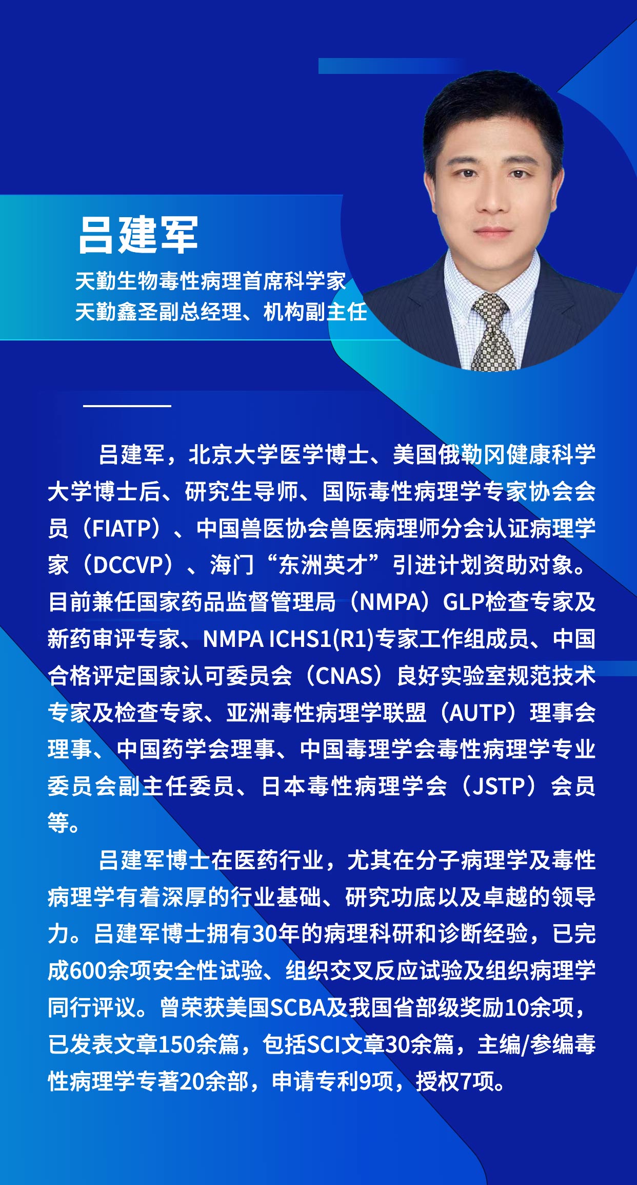 天勤生物任命呂建軍博士為公司毒性病理首席科學(xué)家,天勤鑫圣副總經(jīng)理、機(jī)構(gòu)副主任